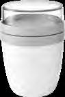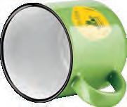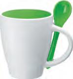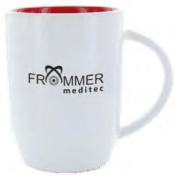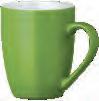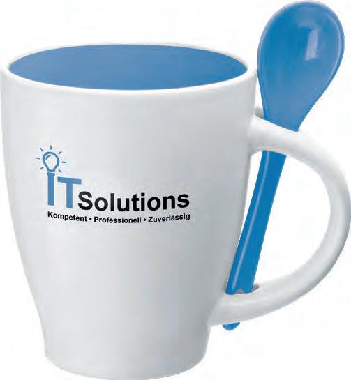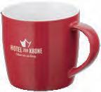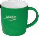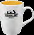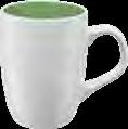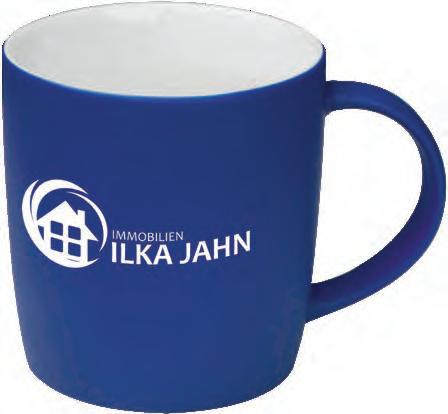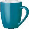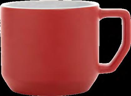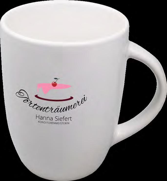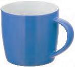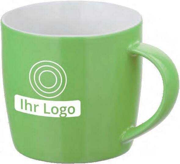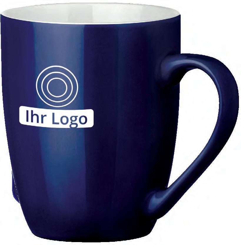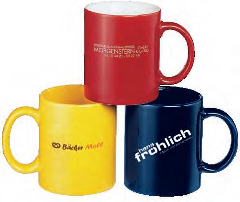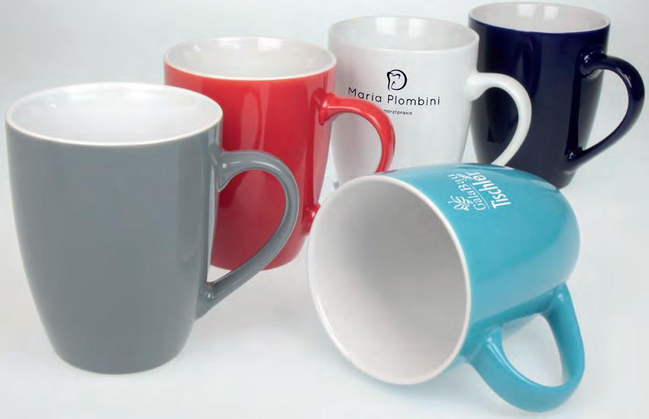 Die Tasse ist in Vollweiß (Porzellan) oder in verschiedenen Farben mit weißer Innenseite (Keramik) erhältlich.