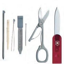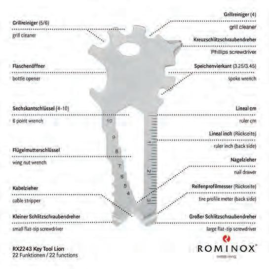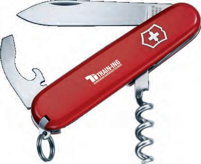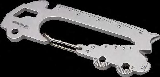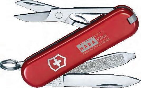 Der Klassiker unter den Taschenmessern für den Schlüsselbund beinhaltet: Klinge, Nagelfeile mit Schraubendreher, Schere, Ring, Pinzette und Zahnstocher.