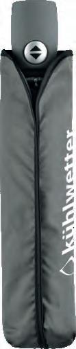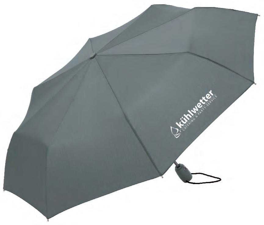Dieser Taschenschirm wird ohne Kraftaufwand manuell geöffnet und geschlossen und passt mit seinen 24 cm Länge in jede Tasche.