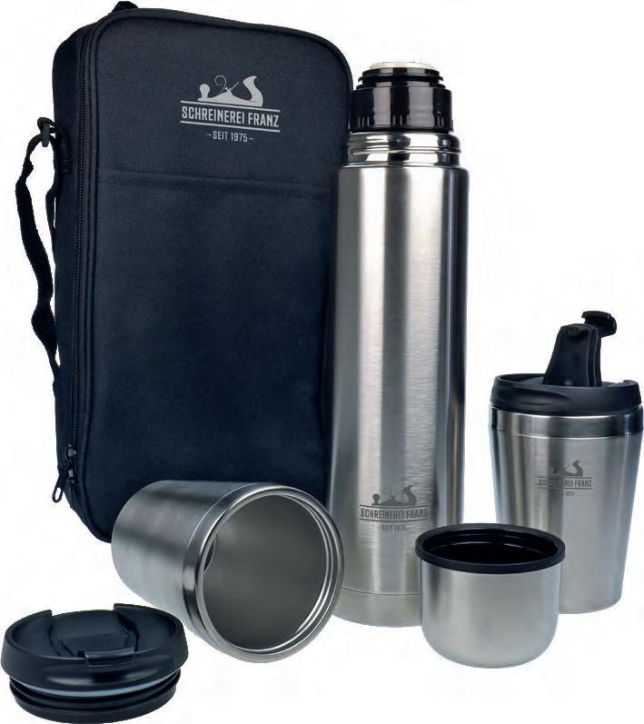 Schönes Geschenkset aus Edelstahl, bestehend aus einer Isolierkanne (vakuumisoliert) und zwei Isolierbechern.
