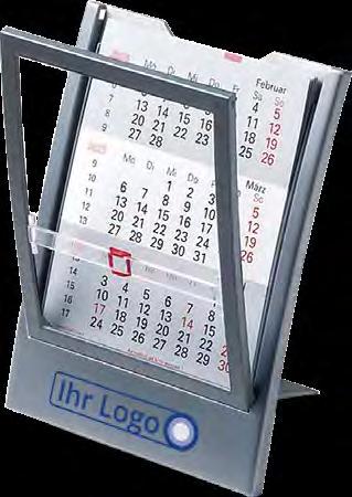 Sehr edler Tischkalender aus Metall für zwei Jahre. Der 3-sprachige (D/ GB/F) Kalenderblock haftet magnetisch am Aufsteller und zeigt drei Monate an.