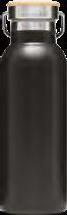 Doppelwandige Edelstahl-Trinkflasche mit Bambus-Deckel, kombiniert mit Schraubverschluss, Silikondichtring und praktischem Tragegriff. Hält Getränke bis zu 8 Stunden warm und 12 Stunden kalt.