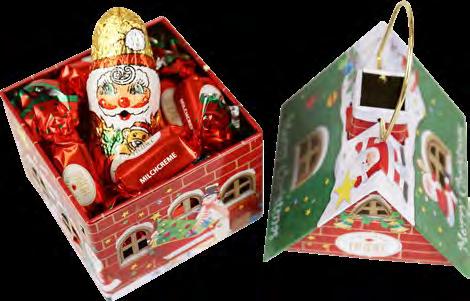 Ein himmlisches Schoko-Duo! In dem weihnachtlichen Mini-Jutesäckchen sind je ein süßer Santa und Engel (je 10 g) aus Vollmilch-Schokolade von Lindt verpackt.Der hübsche Geschenkanhänger wünscht auf der einen Seite „Frohe Weihnachten“ und auf der anderen „Merry Christmas“. Maße: ca. 7,5 x 11,0 x 2,0 cm.