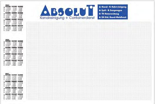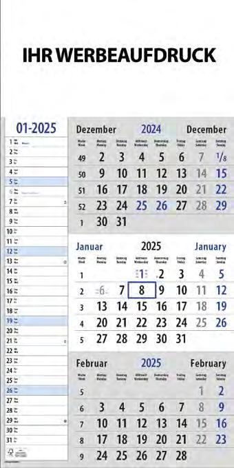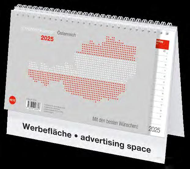 Für die Präsenz Ihrer Marke beim Kunden an 365 Tagen im Jahr bieten wir Ihnen ab Seite 44 eine große Auswahl Werbekalender 2025 – hier ist eine besonders langfristige Werbewirkung garantiert! Je schneller Sie bestellen, desto früher können Sie verteilen, und sich so den besten Platz im Büro Ihres Kunden sichern!