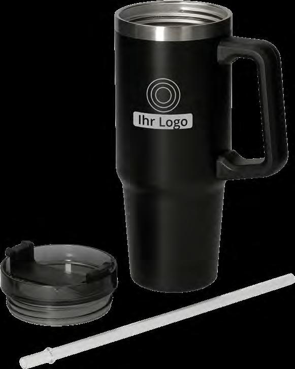Ein Thermobecher Made in Europe! Die doppelwandige Edelstahlausführung mit Vakuumisolierung und auslaufgehemmten Deckel hält Getränke ca. 5 h heiß und 8 h kalt.