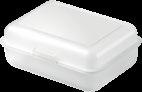 BPA-freie Box aus Kunststoff mit Klickverschluss für das Pausenbrot oder die Aufbewahrung anderer Snacks. Maße: 17,5 x 12,8 x 6,9 cm. Im Polybeutel.