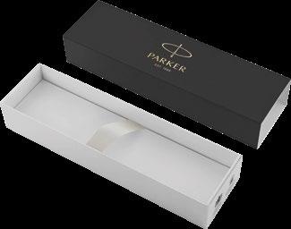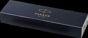 Innovatives Schreibgerät aus Metall mit blau schreibender Metall-Großraummine in verschiedenen Farbvarianten. Im Parker Geschenkkarton.