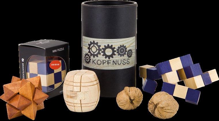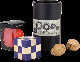 Eine echte Kopfnuss, welche zugleich für Spannung, Spaß und graue Haare sorgt! Diese kleine Aufmerksamkeit für viele Gelegenheiten wird bestimmt nicht so schnell in Vergessenheit geraten. In der kleinen, schwarzen Geschenkrolle befinden sich ein hochwertiges Holz-Knobelspiel (sortiert) und das dazu passende Brainfood, zwei Walnüsse. Knacken Sie die (Kopf)Nuss? Maße: 12 x 7 x 7 cm.