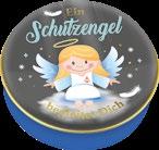 Es gibt Zeiten, da können wir alle gut einen Schutzengel gebrauchen. Mit der schönen Heidel Schutzengel Sprüchedose haben Sie eine tolle Präsentidee. Die runde Metalldose ist mit einem niedlichen Schutzengel und einem liebevollen Spruch bedruckt. In der Dose befinden sich 3 leckere Pralinen aus Vollmilchschokolade, die mit zarter Milchcreme gefüllt sind. Verschiedene Designs, Motive werden gemischt geliefert. Inhalt: 32 g. Maße: Ø 7 x 3 cm.