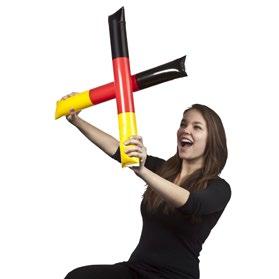 Perfekt zum Anfeuern! 2 Schläuche in Deutschland Farben mit selbstschließendem Ventil-Mechanismus. Ein beiliegender Strohhalm ermöglicht einfaches Aufblasen und schnelles Auslassen der Luft. Maße. 59 x Ø 10 cm. Im Polybeutel.