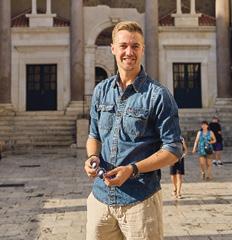 Seitdem wir unseren kleinen Bulli Karli haben, suche ich un sere Reiseziele vorrangig nach Van-Tauglichkeit aus. Das sind Orte, an denen es erlaubt ist, seinen Van hinzustellen, also genau das Gegenteil von Instagram Hotspots. Wichtig ist mir dabei immer, dass wir auch an schönen Orten stehen dürfen. Deshalb sind wir jetzt das dritte Mal gemeinsam in Norwegen, denn Norwegen ist voller wunderschöner Berge, bei denen man tolle Fotomotive findet. Vor allem aufgrund der tollen Aussichten lieben wir die Dolomiten, die Alpen und Norwegen – eben alles, was atemberaubende Natur bietet. Unterwegs fotografiere ich sowohl mit meiner Sony A73, für Vi deos benutze ich hauptsächlich das Handy. Ansonsten posiere ich auch viel und Mathias fotografiert. Am wichtigsten ist mir bei einem Foto die Emotionalität. Deshalb fotografieren wir meistens bei Son nenaufgang, manchmal auch bei Sonnenuntergang, weil es dann ein viel emotionaleres Licht gibt als tagsüber. Und dazu gehört auch ein atemberaubendes Motiv, zum Beispiel oben auf einem Berg mit toller Aussicht. Hier soll die Emotionalität rüberkommen. Mein Tipp, um die perfekten Reisemomente festzuhalten, lautet deshalb: Über seinen Schatten springen und einfach mal früh aufstehen. Das machen viele im Urlaub nicht gerne, aber so früh am Morgen ist die Stimmung am schönsten, die Natur erwacht, die Vögel fangen an zu zwitschern – es ist etwas ganz Besonderes und jetzt entstehen auch die emotionals ten Fotos.