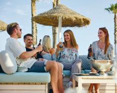 In den Aldiana Club Resorts kann man sich auf neue Erfahrungen und Begeg nungen und auf die typisch bezau bernde Clubatmosphäre freuen, zu dem der Slogan passt: „Urlaub unter Freunden! Willkommen im Club!“