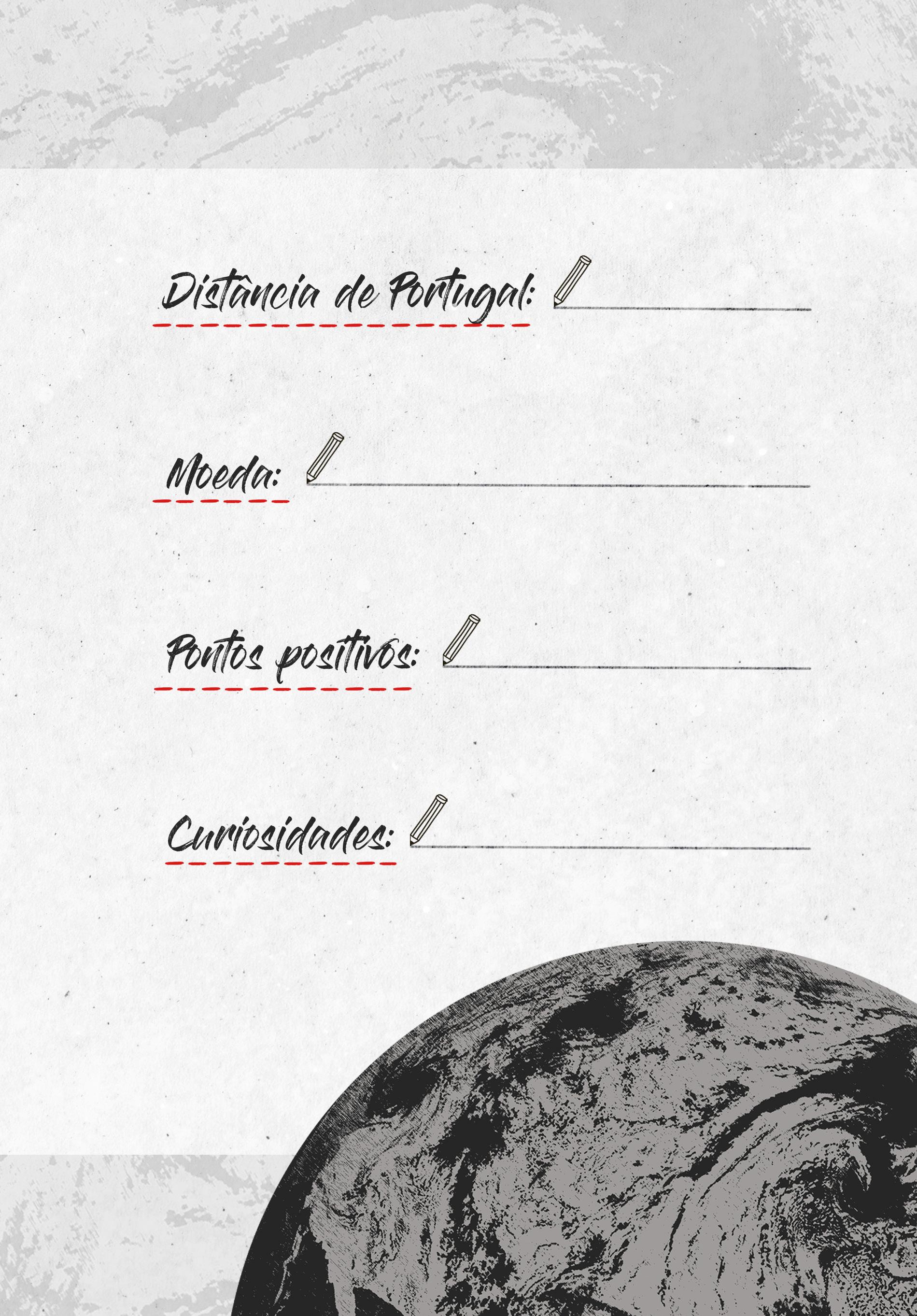 Para te ajudar a registar o resultado das tuas pesquisas, preenche o seguinte cartão de identificação do país e quem sabe se um dia não será, realmente, o destino de uma grande aventura.