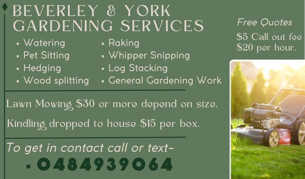 Gardening services available include spraying, weeding, full cleanups, makeovers, retic systems both auto & manual. Delivery available: sheep manure $150 (single bags $8) also available gravel, yellow sand - 3 tonne truckload. Contact Ken 0427 422 251.