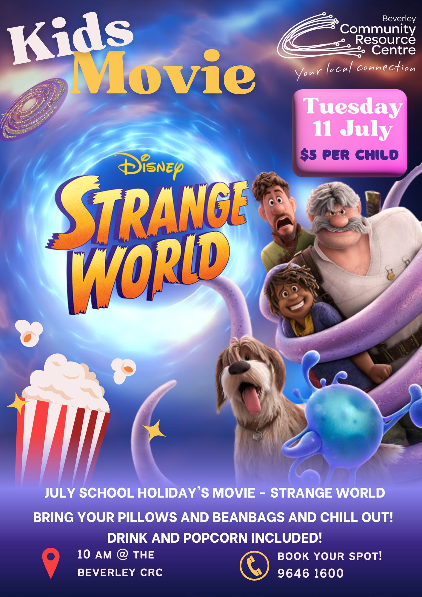 The school holidays are fast approaching and we have the movie Strange World playing at the CRC on Tuesday 11 July, starting at 10am sharp! Bring your pillows and beanbags and chill out! $5 per child - includes a drink and popcorn. Children under 5 years old need to be accompanied by an adult. Bookings essential call Beverley CRC on 9646 1600.