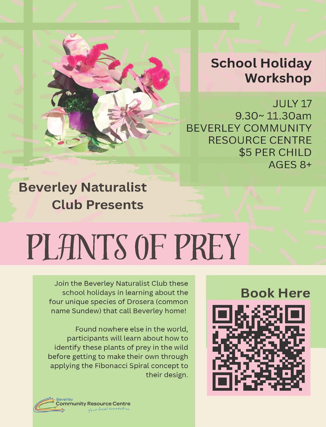 Did you know we have carnivorous plants right here in Beverley? This fun workshop will be in the next school holidays on Thursday 17 July, 9.30am to 11.30am.