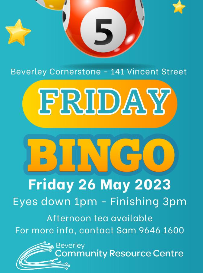 Join us on Friday 26 May at the Beverley Cornerstone for another fun session of bingo, eyes down 1pm - finishing 3pm, afternoon tea available. To our regular bingo crew don’t forget to put on your best outfit for the video.