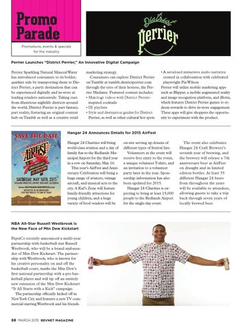 marketing strategy. Consumers can explore District Perrier on Tumblr at tumblr.districtperrier.com through the eyes of their hostess, the Perrier Madame. Featured content includes: • Mixology videos with District Perrierinspired cocktails • DJ playlists • Style and destination guides for District Perrier, as well as other cultural hot spots