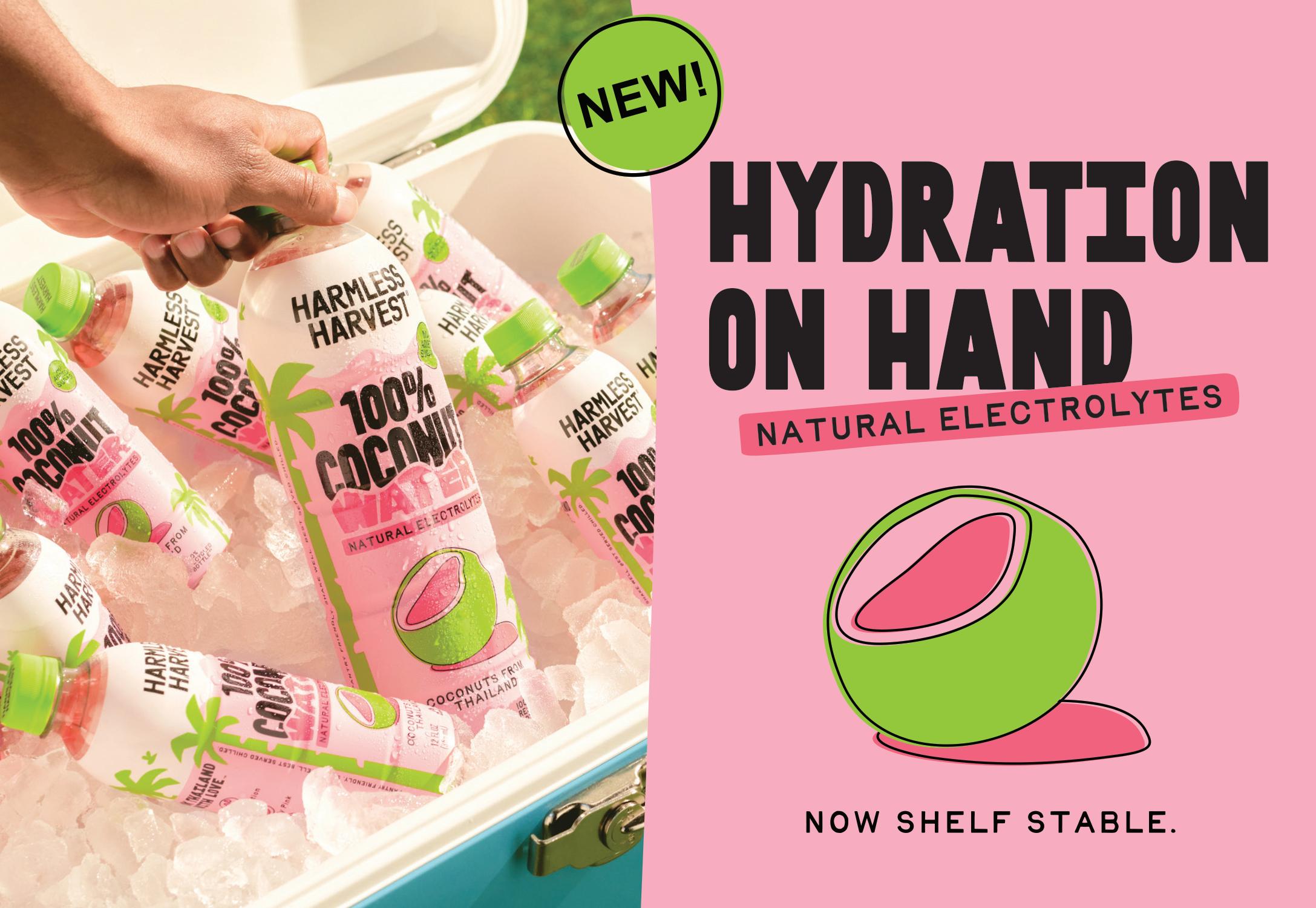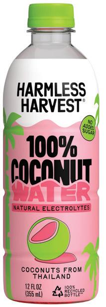 Stock up on freshfrom-the-coconut taste without sacrificing precious fridge and freezer space with Harmless Harvest Shelf Stable 100% Coconut Water. Using only coconuts from Thailand it has natural electrolytes, no additives or added sugar.