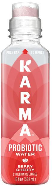 Karma Probiotic Water's patented PushCap delivers 2 billion CFUs & six essential vitamins for digestive health and immune support. Zero artificial colors, flavors, or sweeteners. Non-GMO, gluten-free, vegan. Available nationwide in RTD & Stick Packs.