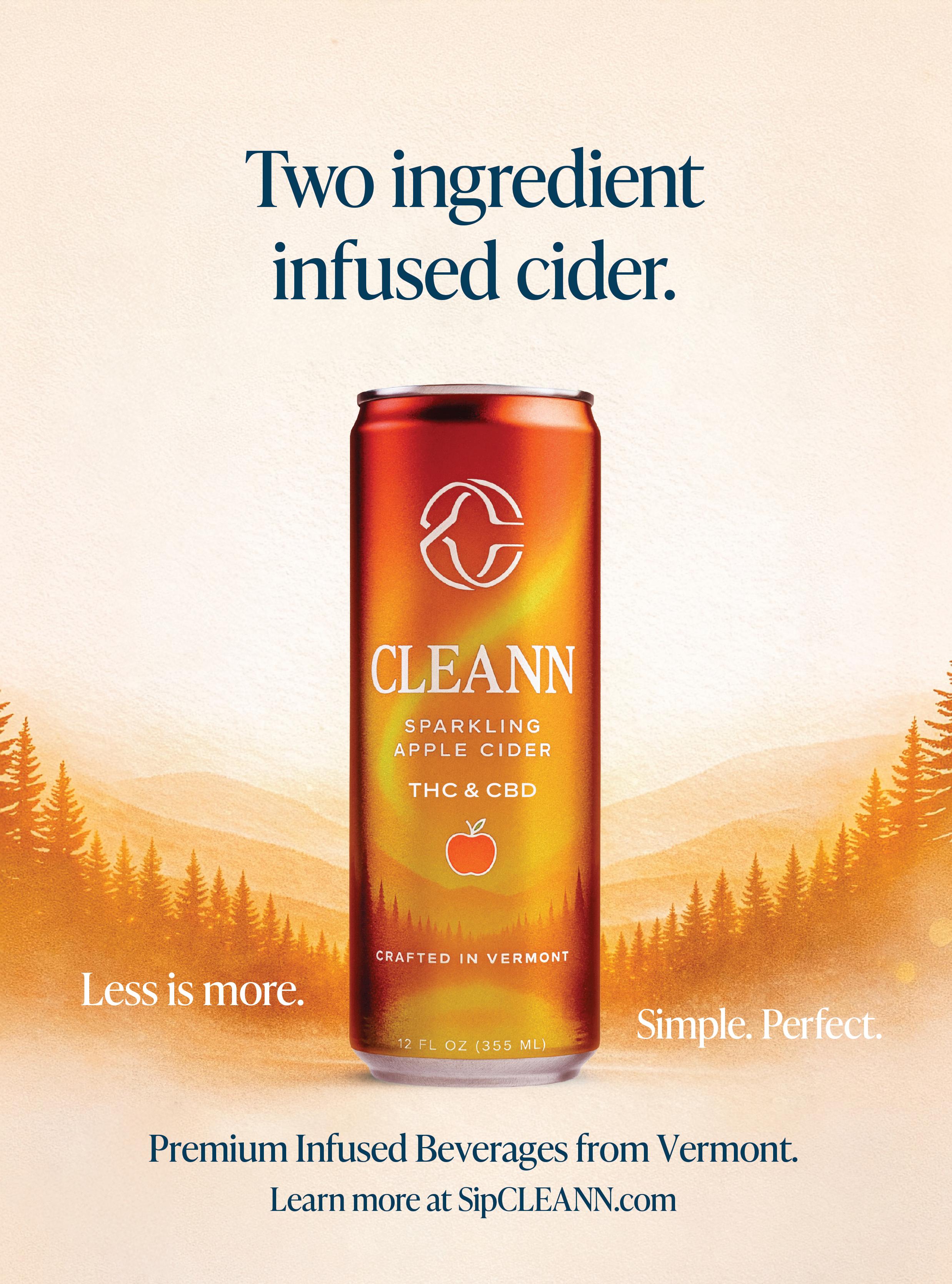 Crafted with cold-pressed apples from Vermont’s Cold Hollow Cider Mill, this sparkling hempderived Delta-9 cider is crisp, refreshing, and naturally uplifting. Made with just two ingredients, it is a clean alcohol alternative rooted in Vermont craft