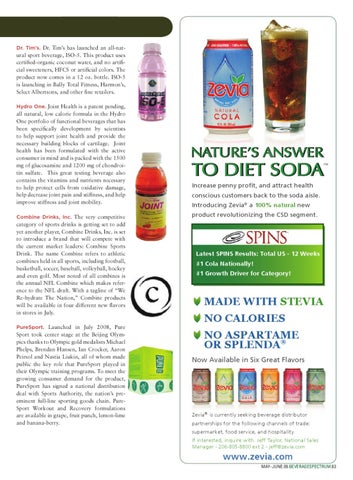 natural new Introducing Zevia a 100% NATURE’S ANSWER TO NATURE’S ANSWER TO product revolutionizing the CSD segment. NATURE’S ANSWER TO NATURE’S ANSWER TO DIET SODA NATURE’S ANSWER TO NATURE’S ANSWERNATURE’S TODIET DIET SODA ANSWER TO Increase penny profit, and attract health NATURE’S ANSWER TO SODA ®