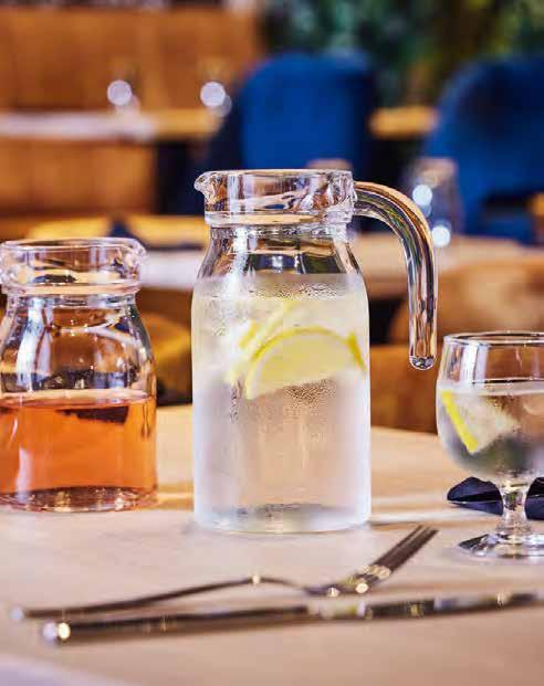Colección de jarras de diseño vanguardista y alta resistencia pensadas para el servicio de cocktails, sangrías, refrescos, zumos, agua de mesa, desayunos en el servicio de buffets, etc.