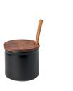 Nótos wooden accessories are made in Portugal of premium beech wood and black acacia (Boutique collection lids and scoops). Nótos pieces are coated with a mate varnish. Hand wash. Wipe the wood pieces with a damp cloth. Do not soak. Do not use detergents or solvents. Dry clean with towel. Use dry food only.