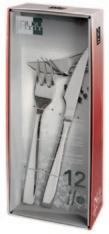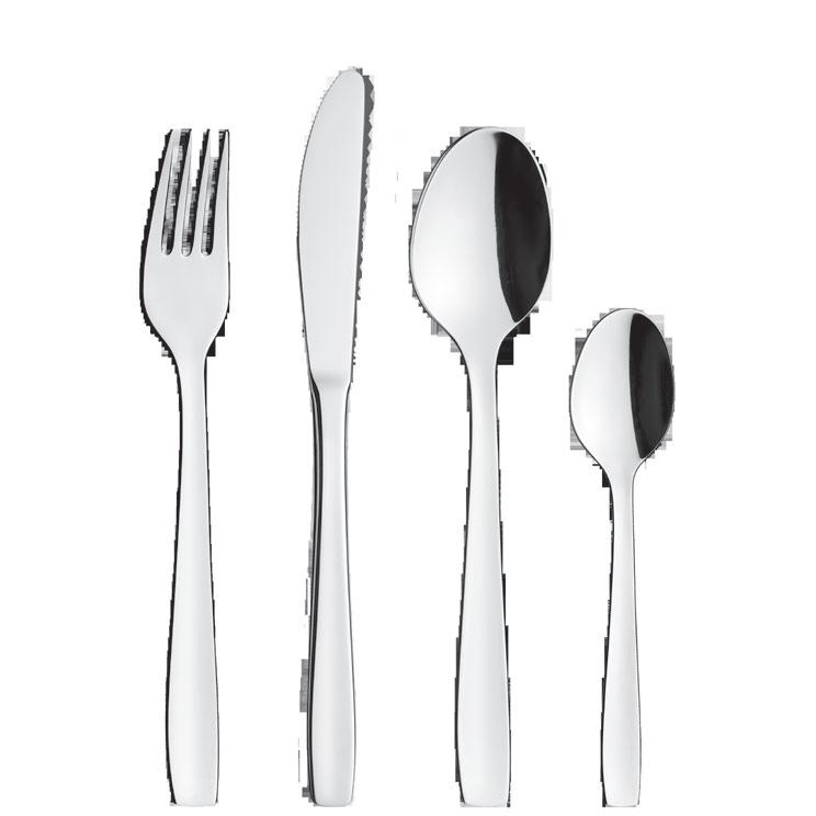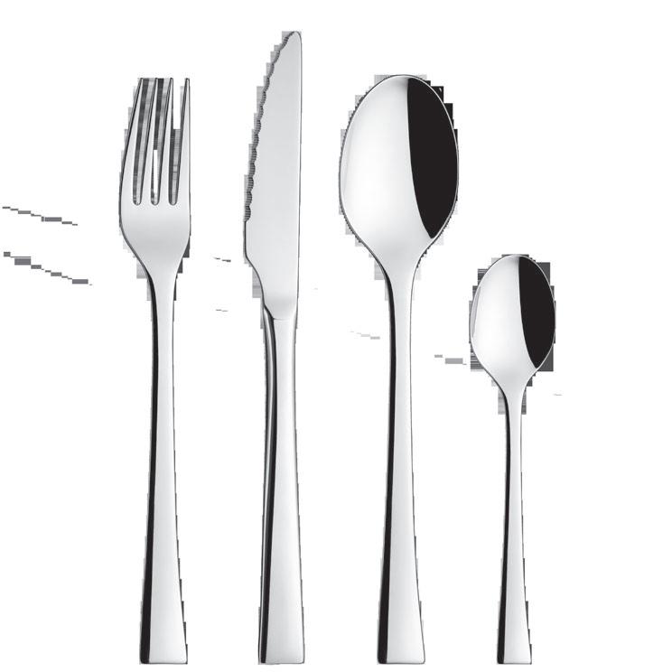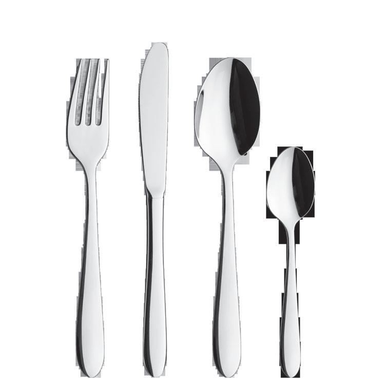 La modernidad va ligada a menudo con la sencillez. Cuando la unión es consumada por manos expertas y experimentadas, la fusión cuaja. Y es entonces cuando el resultado salta a la vista. Formas suaves y ángulos cuidadosamente limados para esta cubertería inoxidable para todos los gustos. Modernity is often linked to simplicity When the union is consumated by expert, experienced hands, the fusion comes together and it is then that the result is obvious. Gentle forms, carefully filed for this stainless cutlery set for all tastes.