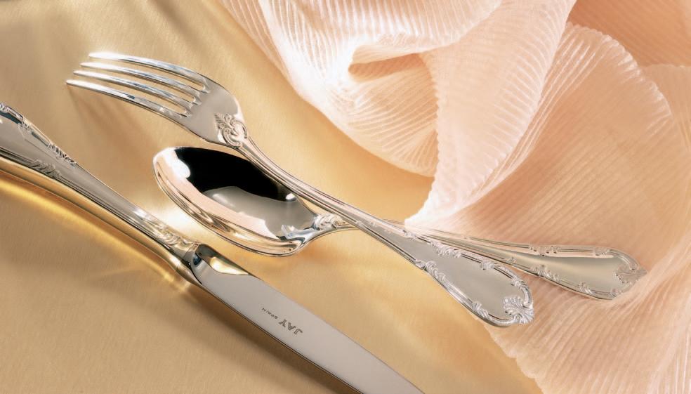 La estrella de la colección. Un equilibrio de plata y acero digno de admiración. Un placer a la vista, un regalo al tacto, toda una experiencia para el gusto. Con la cubertería Suecia, los alimentos cobran aún más sabor. Cualquier celebración se convierte en un acontecimiento inolvidable.
