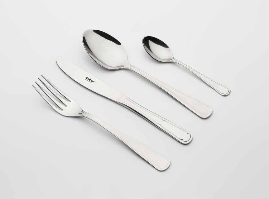 18/10 AISI 304 2.5 mm # DESCRIPCIÓN DESCRIPTION DESCRITIVO REF. € 1 Cuchara mesa TABLE SPOON COLHER MESA 23001 2,98 12 2 Tenedor mesa TABLE FORK GARFO MESA 23002 2,98 12 3 Cuchillo mesa TABLE KNIFE FACA MESA 23003 4,05 12 4 Cuchara postre DESSERT SPOON COLHER SOBREMESA 23004 2,90 12 5 Tenedor postre DESSERT FORK GARFO SOBREMESA 23005 2,90 12 6 Cuchillo postre DESSERT KNIFE FACA SOBREMESA 23006 4,00 12 7 Cuchara café TEA SPOON COLHER CHÁ 23007 1,77 12 8 Cuchara moka COFFEE SPOON COLHER CAFÉ 23008 1,73 12 9 Tenedor lunch CAKE FORK GARFO BOLO 23009 1,81 12 10 Pala pescado FISH KNIFE FACA PEIXE 23012 2,96 12 11 Tenedor pescado FISH FORK GARFO PEIXE 23013 2,96 12 12 Cucharón legumbre SERVING SPOON COLHER ARROZ 23014 8,28 1 13 Cazo sopa SOUP LADLE COLHER TERRINA 23016 19,32 1 14 Pala servir pescado FISH SERVING FORK FACA TRINCHAR PEIXE 23022 8,28 1 15 Tenedor servir pescado FISH SERVING FORK GARFO TRINCHAR PEIXE 23023 8,28 1 16 Pala pastel CAKE SERVER PÁ BOLO 23025 8,28 1 17 Cuchillo chuletero STEAK KNIFE FACA CHURRASCO 23033 4,37 12 Est. 24 Pzas. 24 PCS. BOX FAQUEIRO 24 PÇS 35023 90,00 1 Est. 75 Pzas. 75 PCS. BOX FAQUEIRO 75 PÇS 35323 250,00 1 Est. 75 Pzas. C/ chuletero 75 PCS. BOX WITH STEAK KNIFE C. 75 PÇS CON F. CHURRASCO 45423 260,00 1 Est. 113 Pzas. 113 PCS. BOX FAQUEIRO 113 PÇS 35523 390,00 1 Est. 113 Pzas. c/chuletero 113 PCS. BOX WITH STEAK KNIFE F. 113 PÇS CON F. CHURRASCO 23088 400,00 1 66 1 2 3 4 5 6 7 8 9 10 11 12 13 14 15 16 17