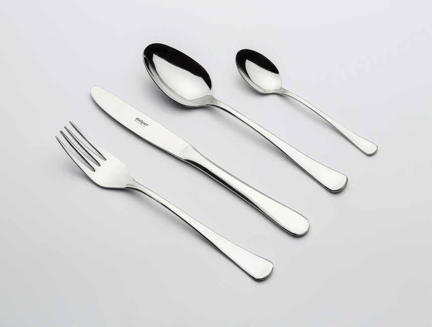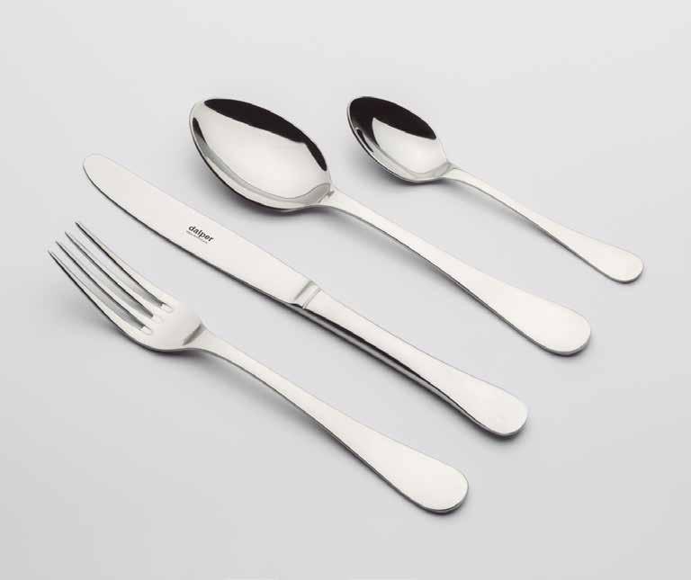 18/0 AISI 430 2.0 mm # DESCRIPCIÓN DESCRIPTION DESCRITIVO REF. € 1 Cuchara mesa TABLE SPOON COLHER MESA 24001 1,36 12 2 Tenedor mesa TABLE FORK GARFO MESA 24002 1,36 12 3 Cuchillo mesa TABLE KNIFE FACA MESA 24003 2,34 12 4 Cuchara postre DESSERT SPOON COLHER SOBREMESA 24004 1,31 12 5 Tenedor postre DESSERT FORK GARFO SOBREMESA 24005 1,31 12 6 Cuchillo postre DESSERT KNIFE FACA SOBREMESA 24006 2,28 12 7 Cuchara café TEA SPOON COLHER CHÁ 24007 0,89 12 8 Cuchara moka COFFEE SPOON COLHER CAFÉ 24008 0,80 12 9 Tenedor lunch CAKE FORK GARFO BOLO 24009 0,97 12 10 Pala pescado FISH KNIFE FACA PEIXE 24012 1,33 12 11 Tenedor pescado FISH FORK GARFO PEIXE 24013 1,33 12 12 Cucharón legumbre SERVING SPOON COLHER ARROZ 24014 4,72 1 13 Cazo sopa SOUP LADLE COLHER TERRINA 24016 13,07 1 14 Cuchara azúcar SUGAR SPOON COLHER AÇÚCAR 24017 1,28 12 15 Cazo salsa SAUCE LADLE COLHER MOLHO 24018 6,78 1 16 Cuchillo t/carne MEAT CARVING KNIFE FACA TRINCHAR CARNE 24020 4,72 1 17 Tenedor t/carne MEAT CARVING SPOON COLHER TRINCHAR CARNE 24021 4,72 1 18 Pala servir pescado FISH SERVING KNIFE FACA TRINCHAR PEIXE 24022 4,72 1 19 Tenedor servir pescado FISH SERVING FORK GARFO TRINCHAR PEIXE 24023 4,72 1 20 Pala pastel CAKE SERVER PÁ BOLO 24025 4,72 1 21 Pala huevos EGGS SERVER PÁ OVOS 24030 4,72 1 22 Cuchillo mesa c/sierra micridentada TABLE KNIFE MICO-SERRATED FACA MESA C/SER. M. DENT. 24031 2,42 12 23 Tenedor ensalada SALAD FORK GARFO SALADA 24051 4,72 1 24 Cuchara ensalada SALAD SPOON COLHER SALADA 24052 4,72 1 Est. 24 Pzas. 24 PCS. BOX FAQUEIRO 24 PÇS 35024 36,00 1 Est. 75 Pzas. 75 PCS. BOX FAQUEIRO 75 PÇS 35324 117,00 1 Est. 113 Pzas. 113 PCS. BOX FAQUEIRO 113 PÇS 35524 174,00 1 1 2 3 4 5 6 7 8 9 10 11 12 13 14 15 16 17 18 19 20 21 22 23 24