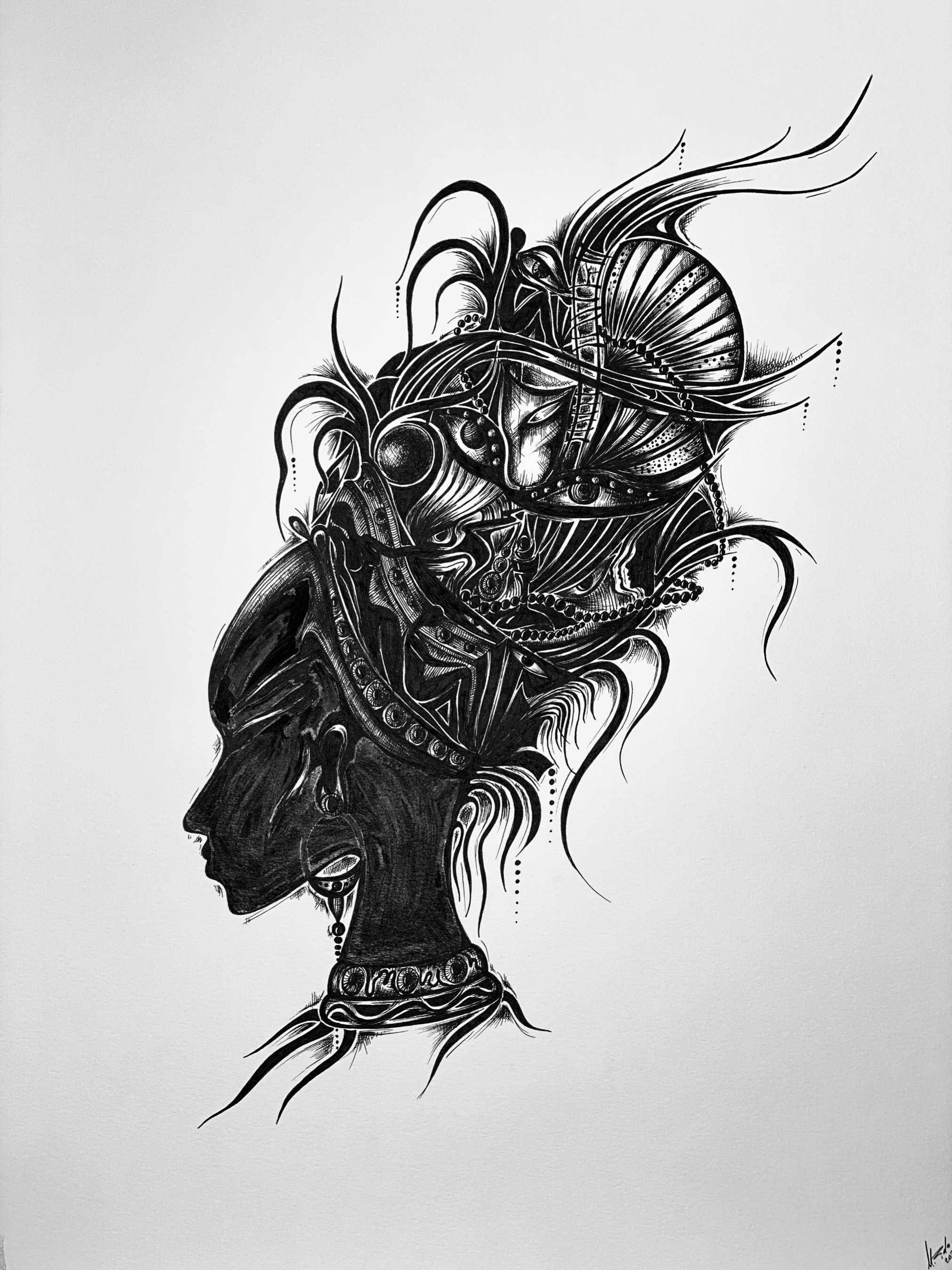 Maka Zida, FulaniQueen Maka is a Georgian-born American artist living in New York City. Artist work reflects a deep appreciation for the timeless beauty and expressive qualities of dipping pen in ink, showcasing the beauty of black and white.