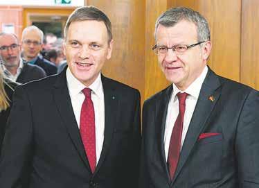 Stadtammann Franco Mazzi (am Mikrofon) und Oberbürgermeister Klaus Eberhardt blickten in ihren Ansprachen zurück und voraus. Fotos: Henri Leuzinger