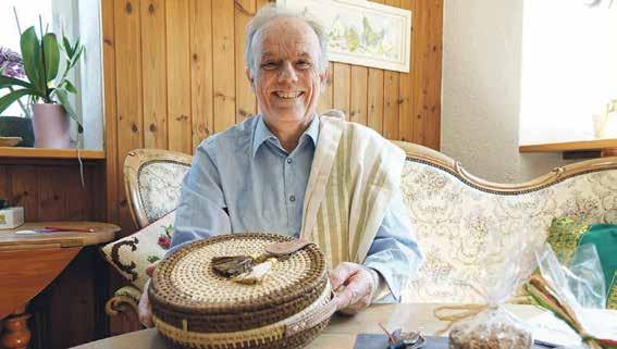 Francois Rousselle mit Gegenständen aus Madagaskar.