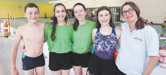 Teilen Freude am Hallenbad (von links): Die SLRG-Mitglieder Joel Acklin, Norah-Marie Legreid, Viola Rehmann, Fiona Näf mit Bademeisterin Denise Grob.