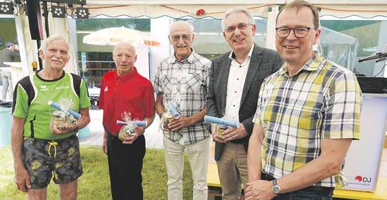 mit Ehrungen (von links): Walter Rech und Jules Hasler mit Festredner Karl Widmer, Regierungsrat Alex Hürzeler und Vizeammann Ralf Dümpelmann. Foto: Peter Schütz Seite 3