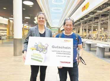Der 53-jährige IT-Spezialist Leonhard Pang gewann das hochmoderne Superbike von Thömus. Der leidenschaftliche Bergsteiger und Eiskletterer strahlte übers ganze Gesicht, als er im Kaiseraugster Einkaufszentrum den Gutschein für sein neues Luxusbike von Zoé Beney, der Marketing-Verantwortlichen des Coop Einkaufszentrums, entgegennahm. «Nach meinen Eiskletterferien in Norwegen plane ich meine nächste Reise nun mit mei -
