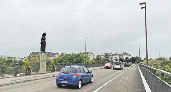 Aber auch sonst galt es einige Widrigkeiten beim Sanieren der rund 40-jährigen Brücke zu überwinden, die altersbedingte Beschädigungen aufwies. Es sei eine technische Herausforderung gewesen, «wie sie bei der Sanierung eines bestehenden Objektes unweigerlich auftreten», so Bühler. «Auch bei der besten Voruntersuchung kann man nicht ins Innere einer Brücke schauen. Vieles sieht man erst, wenn man den Patienten aufmacht», machte er deutlich. Eine zusätzliche Herausforderung war der während der bereits laufenden Projektierung gefällte Entscheid, den Veloverkehr neu über die Fridolinsbrücke zu führen. So mussten Geländer versetzt und die beiden Fahrspuren zugunsten von beidseitigen Gehwegen, die auch vom Veloverkehr genutzt wer-