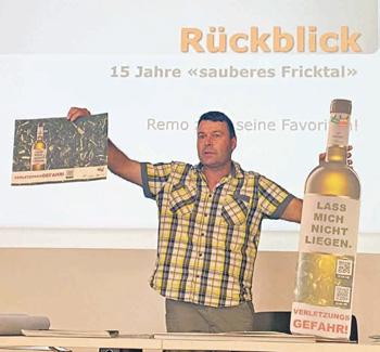 Remo Kämpfer, der für den Werkhof Magden tätig und Mitglied der Arbeitsgruppe ist, hielt einen Rückblick auf 15 Jahre «sauberes Fricktal» und präsentiere seine persönlichen Favoriten aus dieser Zeit. Ein Blickfang seien jeweils die Plakate mit von Kindern gestalteten
