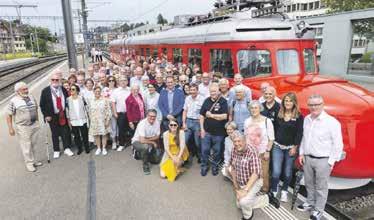 grüssungsrede des Lokalhistorikers Ar min Käser stellte Verbindendes zwischen dem Rebbau aus allen Regionen und der Bauepoche der Eisenbahn her. So war sofort allen Aktiven, Besuchern und Besucherinnen klar, dass von der Aare über die Reuss bis an den Rhein eine Seelenverwandtschaft existieren muss. Der Chor erhielt für seine respektable Grösse, dann aber vor allem für seinen ausgewogenen Chorklang höchste Anerkennung von allen Seiten. Der erste Kontakt mit dem Chor aus dem Schenkenbergertal darf aus gesanglicher und kameradschaftlicher Sicht als gelungen bezeichnet werden. Er verspricht für die anspruchsvolle Konzertreihe von Ende Oktober in Schinznach, Obermumpf und Zeiningen eine vorzügliche Zusammenarbeit. Foto: zVg