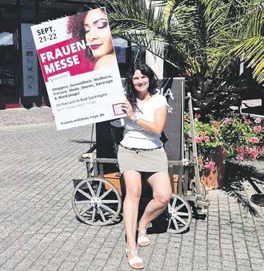 Ein paar unbeschwerte Stunden auf der Messe zu verbringen, sich eine kleine Auszeit in schönem Ambiente gönnen. Hört sich das nicht gut an? «Dann bist du bei uns auf der Frauenmesse in Bad Säckingen genau richtig!», betont Anja Inderwildi. Unser Bild: Veranstalterin Anja Inderwildi mit dem «Frauenmesse»Plakat vor dem Kursaal Bad Säckingen, wo der Messe-Event am 21. und 22. September stattfinden