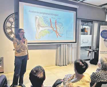 klärte sie den schleichenden Prozess, der meist bei den hohen Frequenzen anfängt. Sie empfahl, das Nachlassen des Gehörs medizinisch abklären zu lassen. Die Ursachen im komplexen Hörsystem können unterschiedlich sein und vom ver stopften Gehörgang über eine Fehlbildung bis hin zu einer Erkrankung der Hörknöchelchen reichen. Einige Probleme liessen sich operativ lösen. Dies sei allerdings nur beim äusseren Ohr möglich. Sei das Innenohr betroffen, könne nur ein Hörgerät oder bei starker Schwerhörigkeit ein Cochlea-Implantat helfen, betonte sie.