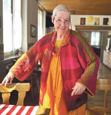 Unser Bild: Gabriela Hartmann hat diese farbenfrohe Jacke aus Sockenwolle mit Farbverlauf gestrickt. In einem einfachen Muster, wie sie erklärt: «Ich habe eine Schwäche für einfache Sachen, die kompliziert aussehen.» Foto: Sonja Fasler