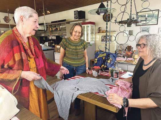 Stricktreff im überschaubaren Rahmen: Gabriela Hartmann, María Cristina Fernández und Angela Diesner (von links) begutachten und besprechen ihre Werke. Foto: Sonja Fasler