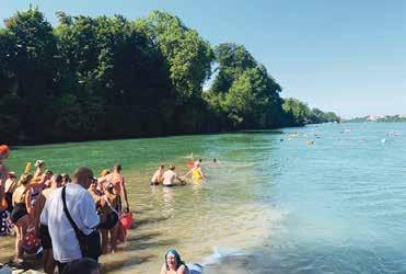 gestaffelten Start von der Spitze des neu sanierten Inselis auf Schweizer Boden los bis zum Ruderclub in Rheinfelden Baden, wo ein stärkendes Getränk offeriert wurde. Der gestaffelte Start konnte als Er folg verbucht werden, da der Ausstieg dadurch entzerrt werden