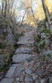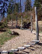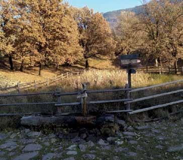 aus dem 6. Jh. Nun wieder zur Rückseite von St. Barbara mit den Hinweisschildern. Bei der Info-Tafel 9 wandern wir über den markierten Steig abwärts, an einem kleinen Tümpel mit Trog vorbei, nach rechts und über Reste des alten Römerweges erreichen wir, uns nach links wendend den ausgeschilderten Radweg nach Auer.