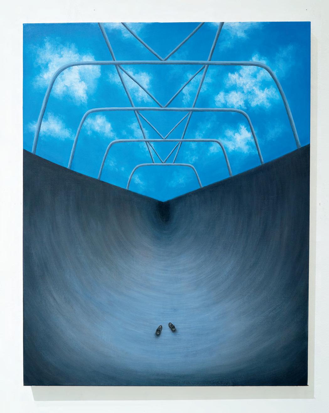 But that’s not all. Then we had nationwide protests against police brutality, an insurrection at the U.S. capital, the resurgence of the Taliban in Afghanistan, the Russian invasion of Ukraine—not to mention the continued Syrian refugee crisis, the rise of misinformation and hate speech across media platforms, the unprecedented weather events killing many and displacing many more. There’s a term, polycrisis, that I was recently introduced to, describing how the concurrency of crises increases their impact. The mental health crisis resulting from the pandemic alone is jarring. It’s easy to see how a younger generation, whose life has been occupied by these compound pressures, would be troubled by what’s to come next. I couldn’t help but have this recent past in mind when I visited SVA to tour the studios of the graduating BFA Fine Arts cohort. And what was the first work I encountered?