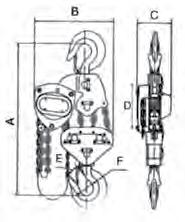 CÓDIGO MOD. CAPACIDAD MÁXIMA (KGS) CLASIFICACIÓN VELOCIDAD DE ELEVACIÓN (M/MIN) POTENCIA DE MOTOR (KW) Nº RAMALES RUIDO (DB) DIMENS. CADENA (M/M) ISO FEM AECJ2000 ECJ4500M52m7.61.21786.3×19 AECJ3000 ECJ41.000M52m5.01.2183×24 AECJ4000 ECJ42.000M52m2.51.22838×24 CÓDIGO MODELO CAPAC. MÁXIMA PRINCIPALES DIMENSIONES (MM.) PESO (KGS) H MIN ABCDEG I JK AECJ2000ECJ4 50041014210239035318222766102762 AECJ3000ECJ4 1.00046014210239035320252766303166 AECJ4000ECJ4 2.0006501855939035327432767203882 GARRAS ARTICULADAS MODELO BT Pág. 48 GANCHO PESADOR MODELO GPJ Pág. 75 ESLINGA “DOL” Pág. 86 CARRO TIPO B SERIE 500 Pág. 22 I J G K Hmin A C B D E