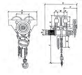 CÓDIGO MOD. CAPAC. MÁX. (KGS) ANCH. DE VIGA (MM) RADIO MÍNIMO VIGA (MM) CLASIFICACIÓN VELOC. DE ELEVACIÓN (M/MIN) VELOC. DE TRASLACIÓN (M/MIN) POTENC. DE MOTOR (KW) POTENC. DE MOTOR CARRO (KW) Nº RAMALES RUIDO (DB) DIMENS. CADENA (M/M) ISO FEM AEEJ100 EJE425074-2003M52m813.50.40.21684×12 AEEJ102 EJTE425074-2003M52m8/220/6.70.4/0.10.21684×12 AEEJ200 EJE450074-2003M52m813.50.720.21655×15 AEEJ202 EJTE450074-2003M52m8/220/6.70.72/0.180.21655×15 AEEJ300 EJE4100074-2003M52m813.51.60.21737.1×21 AEEJ302 EJTE4100074-2003M52m8/220/6.71.6/0.40.21737.1×21 AEEJ400 EJE4200074-2003M52m413.51.60.22737.1×21 AEEJ402 EJTE4200074-2003M52m4/118/61.6/0.40.22737.1×21 MODELO CAPAC. MÁXIMA H MIN ABCDEFGIJKMN PESO (KGS) EJE4 25044511012320123118320222904452729013053 EJTE4 25044511012320123118320222904452733613063 EJE4 50049811816223120918320223405572729013055 EJTE4 50049811816223120918320223405572733613065 EJE4 100057212818726225022320253835673129013073 EJTE4 100057212818726225020320253835673133613084 EJE4 200065015016526225027320433835633831513292 EJTE4 200065015016526225027320433835633833813296 I A F M N CD E B K G J Hmin M N C D K Hmin A F B J GARRAS ARTICULADAS MODELO BT Pág. 48 GANCHO PESADOR MODELO GPJ Pág. 75 ESLINGA “DOL” Pág. 86 GARRAS FIJAS MODELO B Pág. 49